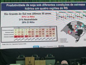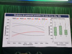 A palestra de abertura, na segunda-feira (22/09), foi do pesquisador em Manejo de Cultura da CCGL agrônomo Tiago Hörbe, com o tema: “Estratégia de Manejo Para Rentabilizar Sistemas de Produção”. Tiago trouxe trabalhos desenvolvidos em cima de anos de estresse hídrico em que é preciso buscar um entendimento sobre a lógica do sistema de produção, com o produtor adotando conceitos de uma agricultura conservacionista. Em seu painel, ele mostrou áreas de um mesmo ano agrícola onde foi produzido – numa delas 35 sacos/ha e noutra 47 sacos/ha.