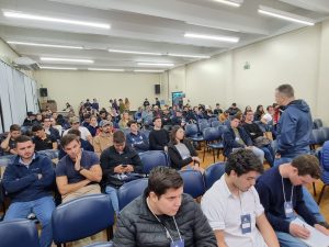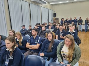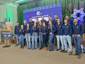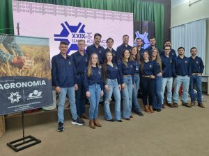A programação da Semana Acadêmica de Agronomia foi aberta na noite de segunda-feira (22/09), com o salão nobre do campus da Unicruz praticamente lotado por alunos, docentes, coordenação do curso, palestrantes e convidados. O evento é um dos acontecimentos mais tradicionais da universidade. Serão quatro dias com palestras, de 22 a 25/09, mais um dia de integração esportiva no ginásio do campus (sexta, dia 26/09) e, no sábado (dia 27/09) o 5º Giro Técnico com visitação orientada, na área experimental, das 9h às 12h.
