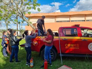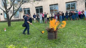 A experiência foi um momento de capacitação e aprendizado para combater princípios de incêndio, com carga teórica e prática, admitiu a presidente da CIPA – Comissão Interna de Prevenção de Acidentes Neusa Christina Rockembach Machado, em agradecimento pela disponibilidade dos palestrantes – sargento Artur e soldada Mariana, em vir até o campus transmitir conhecimentos e fazer a demonstração prática.