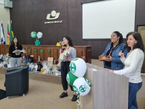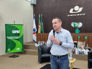 A Semana SIPAT 2025 foi aberta pela presidente da CIPA Neusa Christina Rockemback Machado que anunciou a programação para terça, quarta e quinta – dias 7, 8 e 9 de outubro, com palestras e atividades especialmente planejadas para total integração do quadro de colaboradores da Unicruz. O reitor professor Fábio Dal-Soto destacou a importância do cuidado com a saúde física e mental, sendo este momento proporcionado pela SIPAT de alta relevância para construir essa reflexão.