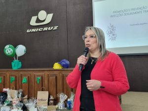 Da saúde mental para a saúde física, a segunda palestra tratou da temática “Promovendo Saúde: Prevenção de ISTs” com a professora Jaqueline Bessa, do Curso de Enfermagem da Unicruz. Ela falou sobre abordagens de novos protocolos, até mesmo a partir da alteração na sigla antigamente conhecida por DST (Doenças Sexualmente Transmissíveis) para Infecção Sexualmente Transmissível – que pode existir e ser transmitida mesmo sem apresentar sintomas visíveis por vírus, bactérias ou outros microrganismos.