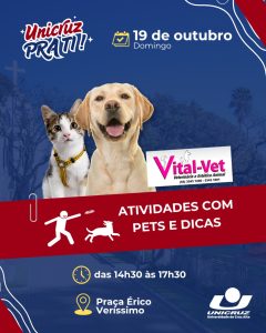 A turma de Medicina Veterinária vai fazer uma exposição de animais taxidermizados, na praça. A taxidermia é uma técnica de preservação que mantém as características físicas dos animais, cuja presença em exposições educativas permite que os visitantes tenham a oportunidade de ter contato com exemplares silvestres, difíceis de serem vistos inclusive no mundo natural. O programa de Pós-Graduação PPGAIS vai promover a atividade “Conectando Saúde” e o Pós-Graduação PPGSDA vai divulgar o programa por meio de representação de práticas socioculturais e desenvolvimento social.