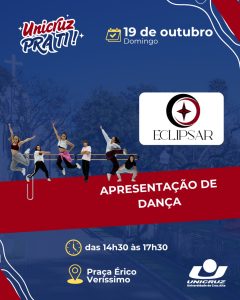 Na parte artística, o público terá a apresentação de dois grupos de danças – Eclipsar e Flict Studio. Os grupos vêm ensaiando para a ocasião uma coreografia solo de dança contemporânea, com a turma infanto-juvenil do Flict Studio. As escolas também estarão enviando um duo e um solo de kpop dance – que faz parte de um programa da produtora Dancecrew Factory. De acordo com a professora Carol Sant’Anna, o Flict Studio tem a exclusividade de ser o único espaço em Cruz Alta onde é ministrado esta modalidade de dança.