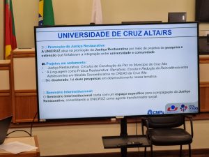 “Cruz Alta está sendo pioneira em práticas restaurativas para o Estado e o país” declarou com satisfação a coordenadora do Núcleo Liége Supititz, ao anunciar o lançamento de um site institucional da Justiça Restaurativa, contendo várias páginas e informações de todos os conteúdos a ela relacionados. No encontro, foi assistida pelos presentes sua primeira apresentação.