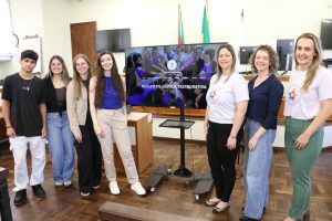– Acadêmicas da Unicruz e o programador Murilo, que construíram o site da JR.