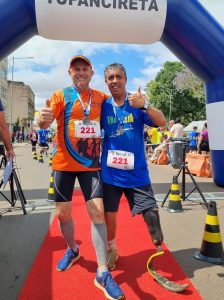 A dupla mais aplaudida ao cruzar a linha de chegada na praça central de Tupanciretã, depois de ter percorrido 12 quilômetros e meio cada um, foram os atletas PCD Carlos Eduardo Trindade de Lima, de 48 anos, e Carlos Roberto Viero, de 59 anos – representando a cidade de Santa Maria. O tempo total dos dois atletas foi de 2h42 minutos. Viero fez o primeiro percurso e Carlos Eduardo o segundo. O primeiro disputou na categoria PCD devido a sua prótese de quadril, enquanto o segundo tem a perna esquerda amputada e correu com uma prótese de carbono.