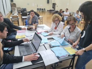 Tão logo terminou o prazo de votação, às 21h, a Comissão Eleitoral presidida por Kendra Caroline Grams e integrada por Déborah Labandeira, Almir da Silva Mello e Neusa Rockembach, deu início ao processo de apuração com a conferência e a elaboração das planilhas de todas as nove seções eleitorais. O trabalho de contagem dos votos exigiu mais de duas horas, numa minuciosa verificação e lançamento de dados. A chapa dos três professores que concorria à reitoria e alguns docentes inscritos para coordenadores de cursos, por exemplo, permaneceram no local de votação e escrutínio, até a proclamação dos resultados.
