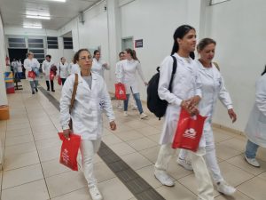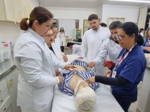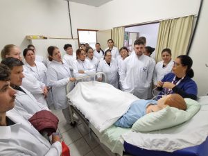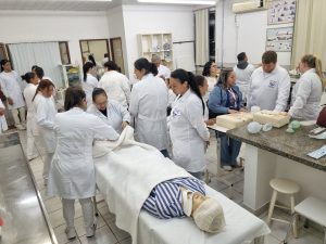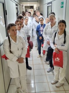 Uma delegação de 40 alunos do Instituto Educacional Annes Dias, representando duas turmas do curso Técnico de Enfermagem, esteve realizando uma visita orientada nos laboratórios instalados no prédio 10 do campus universitário, na noite da sexta-feira, dia 31/10. A visita foi monitorada pela professora Isabel Cristina da Silva, que é docente do curso técnico do instituto estadual e também professora do Curso de graduação em Enfermagem da Unicruz.