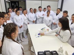 O roteiro iniciou por voltas das 19h30min, com visitação do Laboratório de Anatomia Humana. Depois, seguiu para o Laboratório de Osteologia, passou pelo de Química Orgânica e de Análises Clínicas (LAC) e, por fim, o Laboratório de Enfermagem. Em todos os locais, os alunos do curso técnico tiveram a oportunidade de conhece diferentes equipamentos, práticas e demonstrações experimentais – simulando situações que mais tarde farão parte da rotina de trabalho de cada um, seja no segmento clínico laboratorial ou hospitalar.