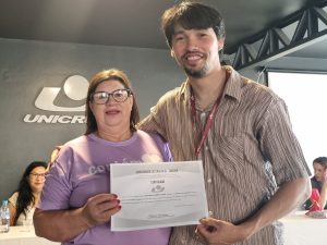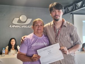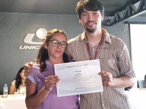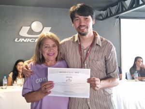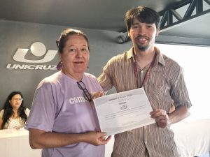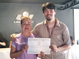 A classe de alunos das oficinas de Inclusão Digital, promovida pelo Curso de Ciência da Computação da Unicruz – mais conhecida pelos corredores do prédio 11 como a “turma das quartas-feiras”, teve o seu momento de conquista e realização pessoal, com o recebimento do Certificado de Conclusão do curso básico. Foi uma solenidade de muitos significados, onde não faltaram abraços, reconhecimentos, lágrimas de alegria – e, também de tristeza, pela ausência de um dos formandos que recebeu homenagem póstuma, prestada à sua esposa, filha e neta.