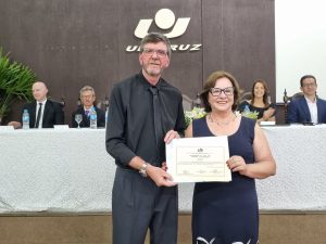 A Unicruz viveu um momento singular, na tarde da última sexta-feira (12/12) durante a solenidade de posse da nova Reitoria, ambientada no salão nobre do campus universitário. O ato que, em tese, seria um rito de transição de cargos, registrou duas significativas homenagens de reconhecimento para personalidades locais e o compromisso da busca pela recuperação de uma instituição – que acaba de completar 37 anos e tem em seu currículo a formação de pelo menos 16 mil e 500 acadêmicos.