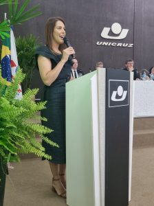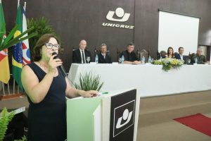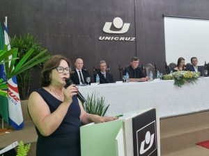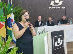 “É tempo de reconstrução, inovação e esperança” anunciou a nova Reitora da Unicruz. “O momento é de olhar para a frente com confiança na força que nos trouxe até aqui” disse ela. Sirlei citou uma cronologia de acontecimentos que marcaram a sua vida acadêmica como professora de ensino Superior, uma trajetória iniciada no ano de 2001, em cursos de extensão nos municípios de Tapera, Salto do Jacuí e Ibirubá. Depois passou a ministrar disciplinas, no campus da Universidade em cursos como Pedagogia, História e Matemática. Assim se passaram 24 anos de dedicação e construção de uma identidade acadêmica de afirmação com a Unicruz.