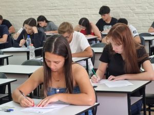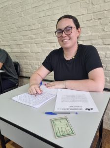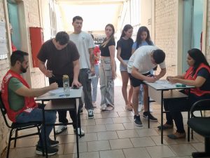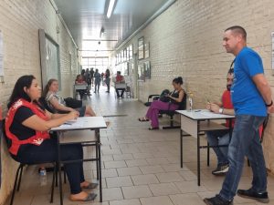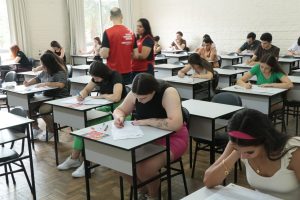 A 30ª Conferência das Nações Unidas – COP30, como tema da redação, foi um desafio para a candidata Maria Julia Aldebrand, de 18 anos, que também acaba de concluir o Ensino Médio. Ela foi a última de todos candidatos que se debruçaram para tirar um texto de 20 a 40 linhas – como exigido no processo seletivo. Quando entregou a redação eram exatas 16h15min, ou seja, sua construção textual teve duas horas e 15 minutos de dedicação. A mãe que esperava por ela no saguão, a comerciante Fábia Lagemann, disse que a filha sempre foi uma leitora aplicada, possui boa escrita e, ainda, surpreende pela oratória.