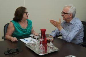 A Reitora da Unicruz Sirlei de Lourdes Lauxen, recebeu na manhã da última quinta-feira, dia 08/01, em seu gabinete no prédio central do campus universitário, a visita de cortesia do deputado federal Pedro Westphalen, acompanhado dos assessores parlamentares João Cunha Lopes e Kárla Winck. O encontro fez parte de uma agenda do deputado cruz-altense na região, mas principalmente em retribuição ao convite para a posse da nova Reitoria, ocorrido dia 12 de dezembro, que por motivo de força maior o parlamentar não pode comparecer.