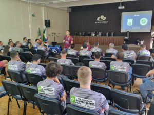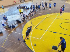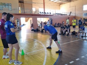 Durante a tarde, todos os árbitros, cronometristas e anotadores, acompanharam as aulas teóricas nas dependências do salão nobre do campus. “A reciclagem é fundamental para manter a qualidade e a credibilidade das competições” explicou a coordenadora e cronometrista Sabrina Rebonatto. Além das avaliações físicas e teóricas, houve momentos de análise prática de lances e estudos de caso, a partir da projeção de imagens num telão.