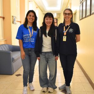 – A intercambista japonesa Rinko Nakane, a Coordenadora Pedagógica do Ensino Médio Karine Bueno e a diretora do Colégio STS Irmã Vanda Fronza.
