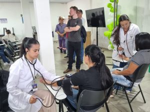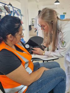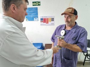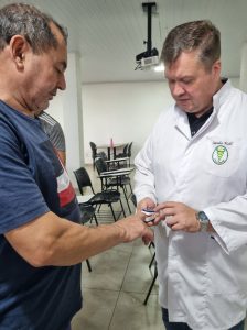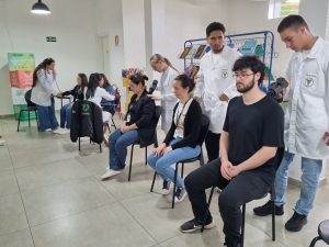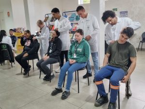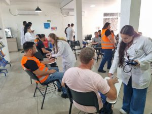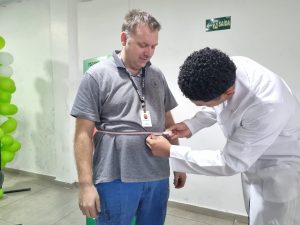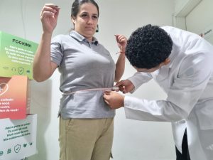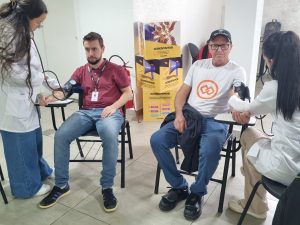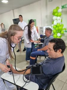 A ação de saúde foi organizada pelo professor e coordenador do Curso de Fisioterapia da Unicruz Leandro Kohl, contando com a participação dos alunos Yuri Franco, Felipe Rabelo e Natael Palma – do 5º semestre, e de Juliana Vasconcelos, Tainara Nicolodi e Laura Ferreira, do 9º semestre. Entre as práticas foram realizadas: aferição de pressão, frequência cardíaca, saturação de oxigênio e Circunferência abdominal.
