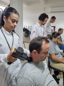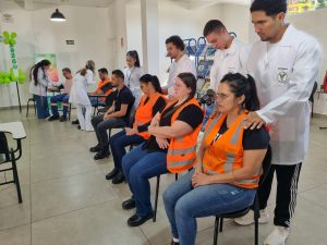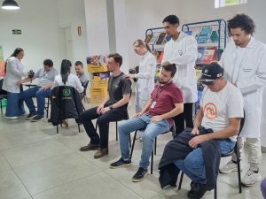 Durante todo o dia, um total de 12 grupos de funcionários dos setores de Administração, Produção e Engenharia, passaram pelo Centro de Convivência para receber além de recomendações gerais de saúde, tiveram a oportunidade de participar de uma ginástica laboral e receber uma massagem relaxante praticada pelos acadêmicos.