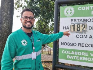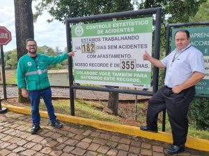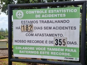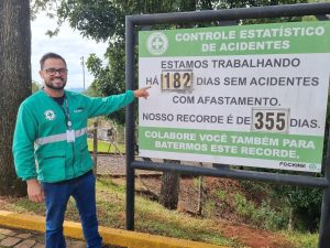 A placa de controle estatístico de acidentes instalada ao lado da guarita de acesso à indústria Fockink informa: “Estamos trabalhando há 182 dias sem acidentes”. Para o técnico Ederson Queiroz tudo vem sendo encaminhado para bater o recorde de quatro anos atrás que foi de 355 dias – que faltou 10 dias para completar um ano. De acordo com Ederson, quem trabalha com segurança lamenta de verdade quando tem que “zerar” a placa e começa tudo de novo.