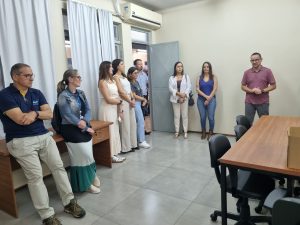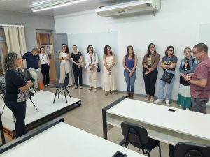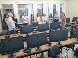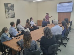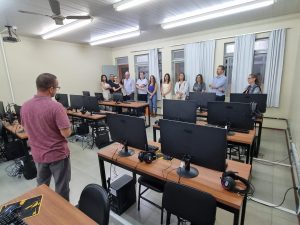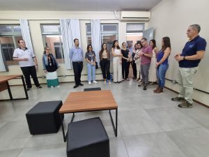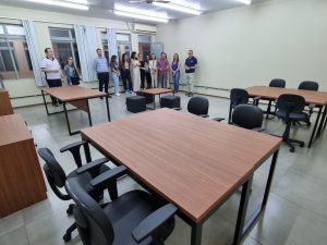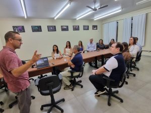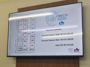 Num primeiro momento, o grupo foi convidado a fazer uma visita orientada nas instalações da Agência Incubadora Tecnológica Conecta, conduzida pelo atual coordenador professor Fábio Dal-Soto. Através de um painel, ele explicou como a estrutura física da Incubadora foi projetada e os investimentos recebidos na ordem de R$ 787 mil reais, obtidos através do processo de Consulta Popular nos anos de 2020 (R$ 314 mil) e 2021 (R$ 473 mil).
