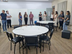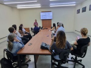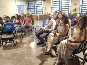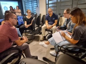 Depois da visita à Incubadora Tecnológica Conecta, os trabalhos do grupo tiveram continuidade no mini-auditório, anexo à agência, localizado no prédio 11 do campus universitário. A discussão a partir daquele momento foi conduzida pela facilitadora da Aliar Consultoria Andressa Urbim, recapitulando a caminhada já construída nas três reuniões anteriores e toda a sensibilização já alcançada entre os atores envolvidos.