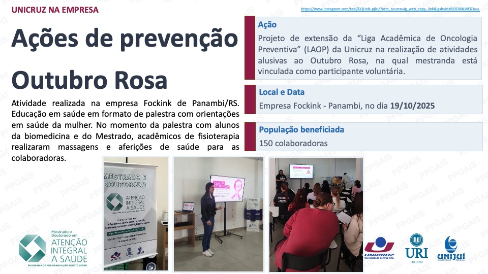Unicruz na empresa Ações de prevenção Outubro Rosa 2025 | UNICRUZ | Universidade de Cruz Alta